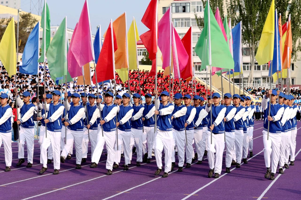 运动员入场完毕。伴着雄伟的国歌,五星红旗冉冉升起。全体师生肃立,向国旗致以最崇高的敬意。在激昂的校歌声中,会旗、校旗缓缓升起,迎风飘扬。