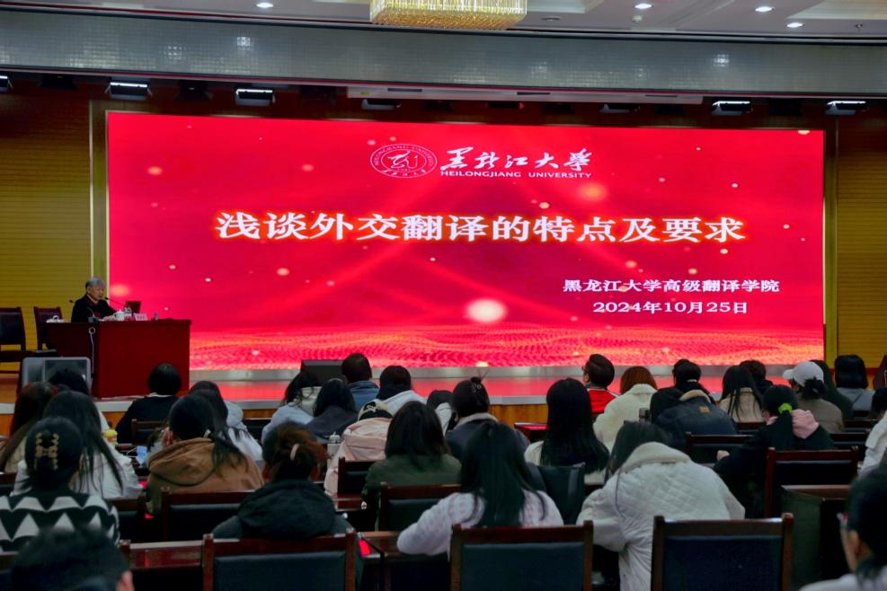 受高级翻译学院邀请,10月25日上午,前任驻外大使、资深翻译家徐亚男到我校作题为“浅谈外交翻译的特点及要求”的专题讲座。徐亚男大使曾任外交部翻译室前主任、中国驻特立尼达和多巴哥共和国大使、联合国大会和会议管理部文件司中文处处长、中国联合国协会理事、中国翻译协会常务理事等,是《习近平谈治国理政》英文定稿专家,长期从事党和国家领导人重要讲话和重大外交政策对外翻译审定稿工作。本次讲座由高级翻译学院副院长祖雪晴主持。