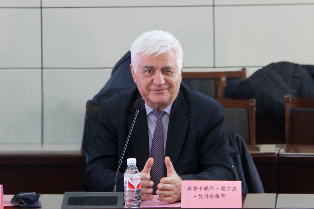 俄罗斯科学工程协会联合会第一书记、第一副主席、俄工程院院士、俄自然科学院通讯院士德鲁卡联科·谢尔盖·彼得洛维奇介绍了此次来访的目的,并表示由黑龙江大学与俄罗斯科学工程协会联合会等诸多单位共同筹办的中俄首届汉俄科技翻译大赛取得了圆满成功。他衷心感谢黑龙江大学在此次大赛筹办过程中的付出以及校领导对此次访问给予的高度重视和精心安排。他期待通过此次访问开启双方在人才培养、科技成果转化等领域开展长期深度合作的新篇章。
