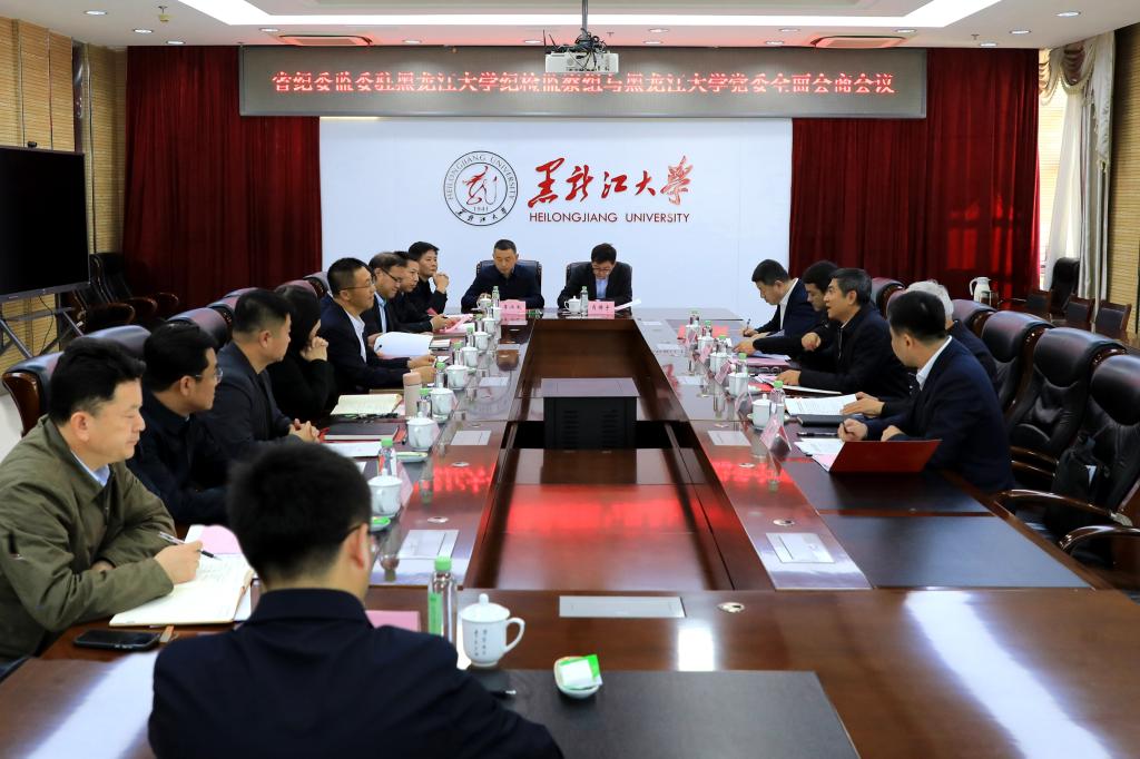 11月1日下午,省纪委监委驻黑龙江大学纪检组与学校党委在主楼A802会议室召开全面会商会议。省纪委副书记、省监委副主任陈光辉,省纪委监委第六监督检查室主任李绍坤、三级调研员王鹏,省纪委监委驻黑龙江大学纪检监察组组长梁东辉、副组长刘宝,校党委书记迟宝旭,校党委副书记李君明,副校长于文秀、井立强、李卓参加会议。迟宝旭主持会议。