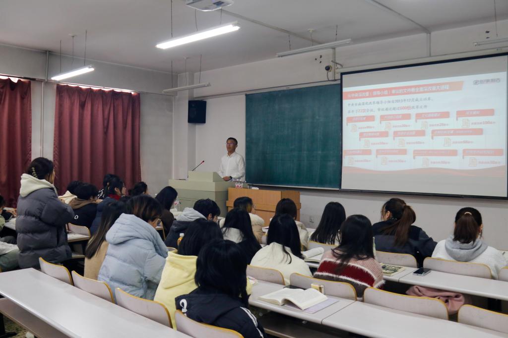 课上,迟宝旭以党的二十届三中全会审议通过的《中共中央关于进一步全面深化改革、推进中国式现代化的决定》为切入点,系统地阐述了全面深化改革的历史进程、发展走向以及坚持全面深化改革的重要性。他将个人经历融入讲解之中,使同学们能够更加深切地感受到改革开放所带来的深远影响。同时,他紧密结合理论与实践,详细阐述了党在经济建设、民主政治、法治建设、文化发展、民生改善、生态文明建设以及国家安全等多个方面所提出的创新理论及所采取的一系列有力举措,总结了由此取得的一系列重大成就,向同学们展示了新时代背景下,党的全面深化改革是全方位、深层次、根本性的壮阔实践。