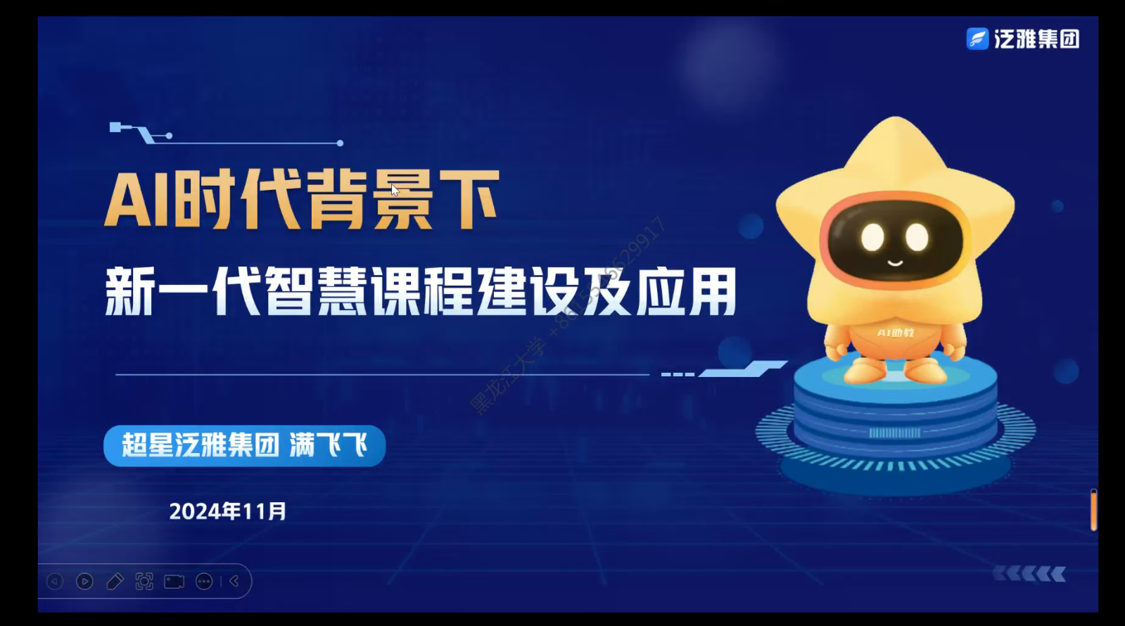 最后,超星集团课程运行经理满菲菲结合黑龙江大学智慧教学平台上线运行的“新版AI知识图谱”和“AI工作台”做了《智慧教学平台AI课程知识图谱和AI工作台应用与实践》的专项培训。信息管理学院张涛教授结合自身开展“AI赋能课程”教学改革开展情况做了《“AI+知识图谱”赋能混合式课程教学设计与实践》的主题报告。(教务处供稿)