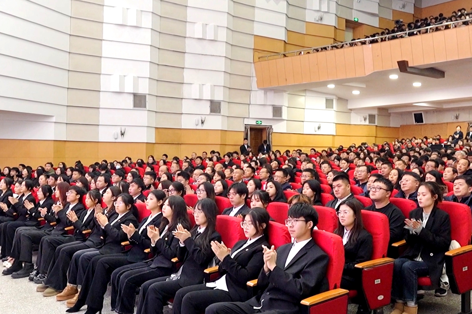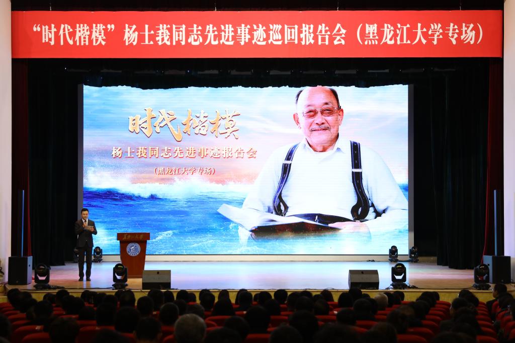 11月28日下午,“时代楷模”杨士莪同志先进事迹巡回报告会(黑龙江大学专场)在音乐厅举行。省委宣传部副部长、省精神文明办副主任尚铁权,校党委书记迟宝旭,党委常委、统战部部长王培军,党委常委、宣传部部长杨其滨,党委常委、组织部部长王刚,学校二级党组织负责人、各职能部处负责人、各学院科研教师和学生代表1000余人参加报告会,报告会通过龙江高校网络思政中心视频号进行同步直播。