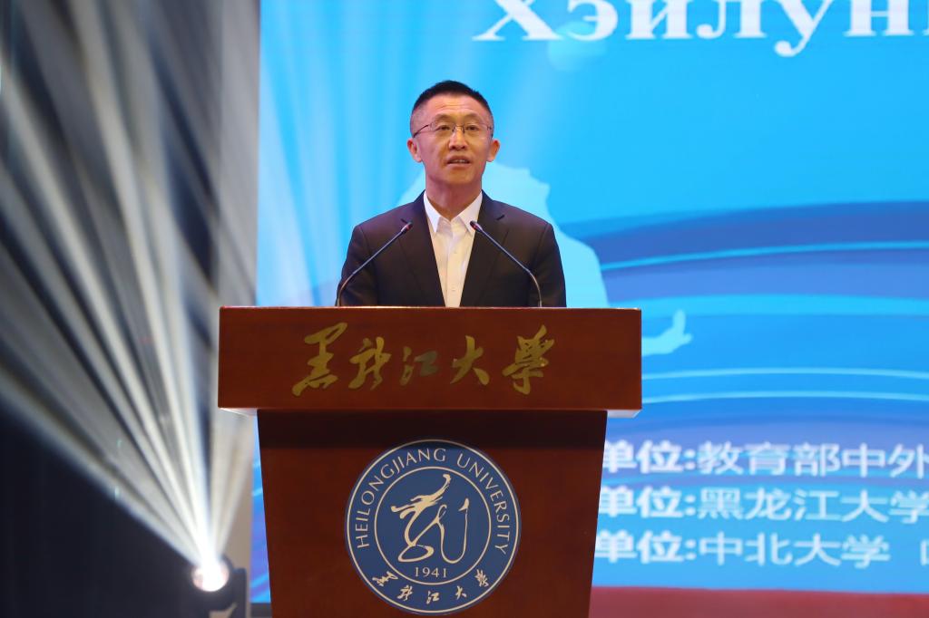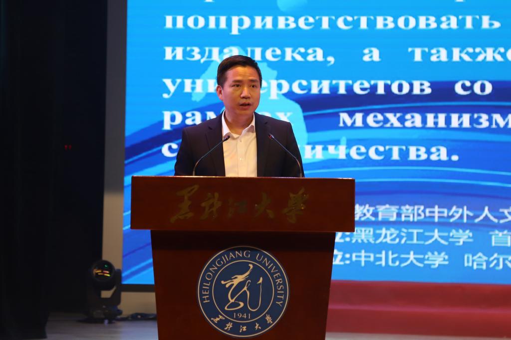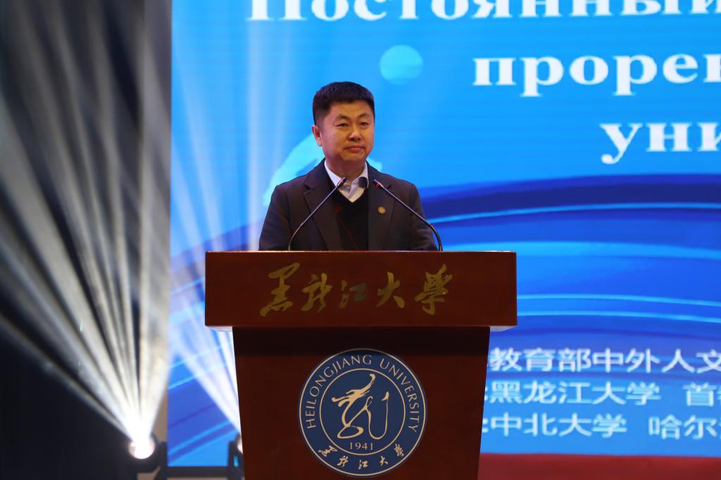 迟宝旭在讲话中代表学校向莅临活动的领导嘉宾们表示热烈的欢迎和由衷的感谢。他指出,今年是“中俄文化年”启动年,中俄高校积极响应,重点发展合作办学、科研攻关、人才培养、语言教学等领域,筑牢合作桥梁。他表示,黑龙江大学是我国对俄办学的龙头院校。自建校来,学校培养了大批优秀人才,建立了与俄语相关的人才培养体系,为助力中俄人文交流作出了积极贡献。希望通过此次活动,促进两国高校间的资源共享,拓宽中俄青年的交流平台,让中俄青年间的互动和友谊绽放出更加璀璨的光芒。
