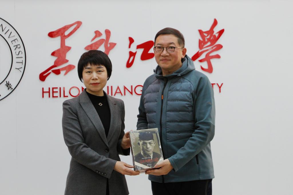 讲座开始前,学校在主楼A802会议室举行了冯雪松先生黑龙江大学客座教授聘任仪式并进行座谈。与会双方围绕融媒体实验室平台建设、科研成果与优秀名师宣传和相关主题策划等方面达成了合作意向。校党委书记迟宝旭为冯雪松颁发“黑龙江大学新闻传播专业客座教授”“黑龙江大学新闻与传播硕士专业学位行业导师”聘书,校党委副书记刘凤影接受冯雪松先生赠书。
