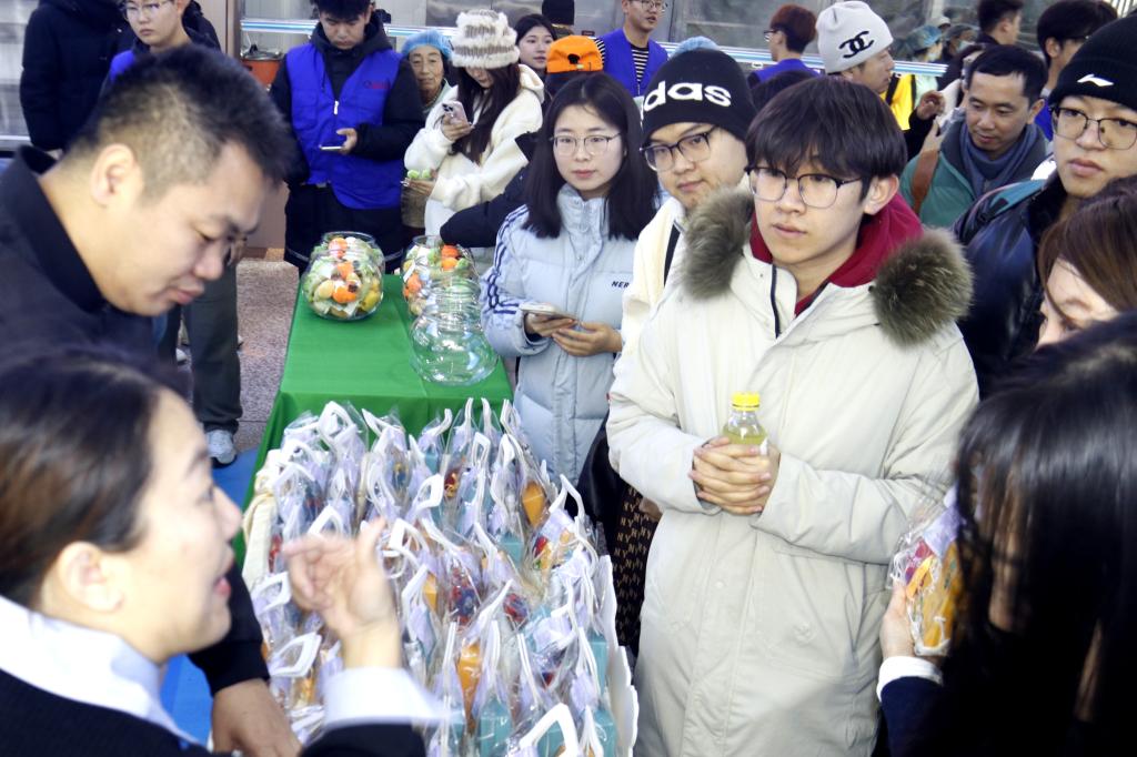 在“邕抱老铁 互换冬天”互动专区,美食品鉴、特产发放等特色活动吸引了众多学子驻足,目不暇接的南宁特色美食散发着诱人的香气。南宁以其独特的地域特色,孕育出了沃柑汁、东方茉莉茶、酸嘢等美食。同学们满怀热情地穿梭于各个摊位之间,品味独具特色的沃柑汁、酸嘢、茉莉花茶……沉浸在美食带来的愉悦和满足中。大家纷纷表示:“品尝了来自南宁的特色美食,是与北方完全不一样的感受。不一样的味道,不一样的做法,却是一样的人情。鲜美食物吃入口中,一股暖意便在心中升腾,在零下二十摄氏度的黑大校园中,品尝一口南宁特色就是极致享受。”