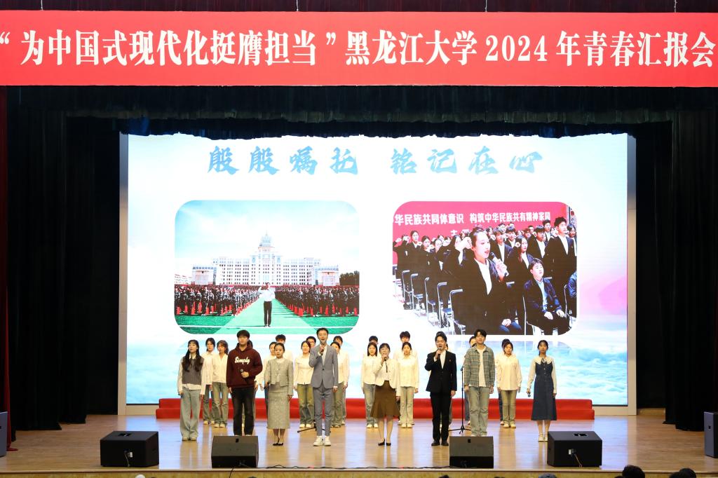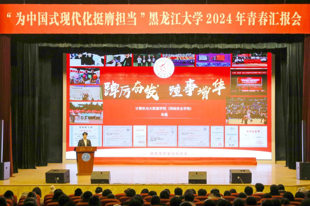 初心如磐担使命,奋楫笃行向未来。为庆祝中华人民共和国成立75周年,深入贯彻落实党的二十大和党的二十届三中全会精神,弘扬先进事迹,彰显榜样力量,引导黑大青年奋力书写为中国式现代化挺膺担当的青春篇章,12月11日下午,我校在音乐厅举办“为中国式现代化挺膺担当”2024年青春汇报会。校党委书记迟宝旭,党委副书记刘凤影,党委常委、统战部部长王培军,党委常委、宣传部部长杨其滨,党委常委、组织部部长王刚出席汇报会并为获奖代表颁奖。