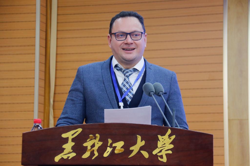 12月11日上午,2024中俄语言教育大学联盟年会在黑龙江大学主楼一楼报告厅召开。黑龙江省教育厅副厅长曹叠峰,莫斯科国立语言大学第一副校长佩特鲁恰克,西伯利亚联邦大学副校长韦尔哈韦茨,坦波夫国立大学副校长古谢夫,黑龙江大学校长王敬波,北京第二外国语学院校长计金标,广东外语外贸大学副校长刘建达,延边大学副校长张学武,贵州师范大学副校长乙引,以及中俄双方30余所高校100余名代表出席会议。本次会议由黑龙江大学副校长井立强主持。