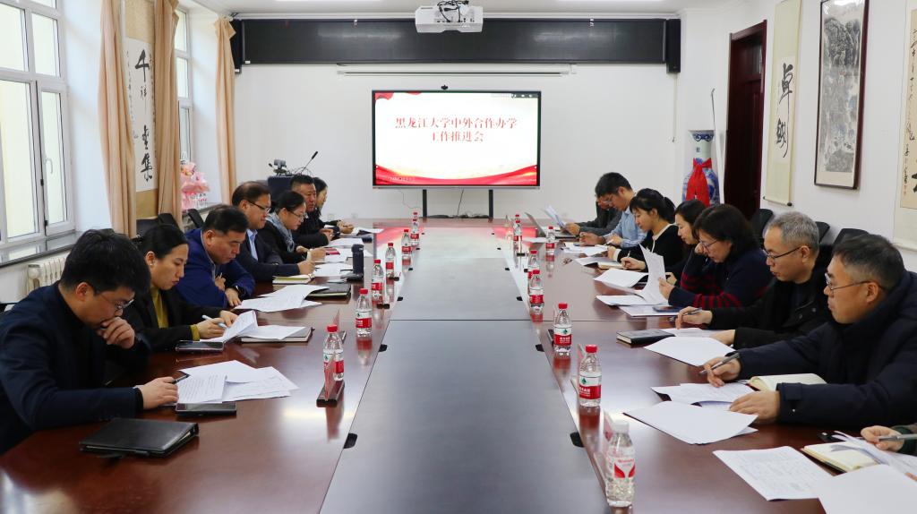 12月9日上午,我校在主楼A418会议室召开中外合作办学工作推进会。副校长井立强,国际合作与交流处、教务处、研究生院、重点建设与发展工作处、财务处、国有资产管理处、招生就业指导中心、高级翻译学院、中俄学院、计算机与大数据学院(网络安全学院)、化学化工与材料学院、数学科学学院、生命科学学院等单位负责人参加会议。会议由国际合作与交流处处长孙秋花主持。