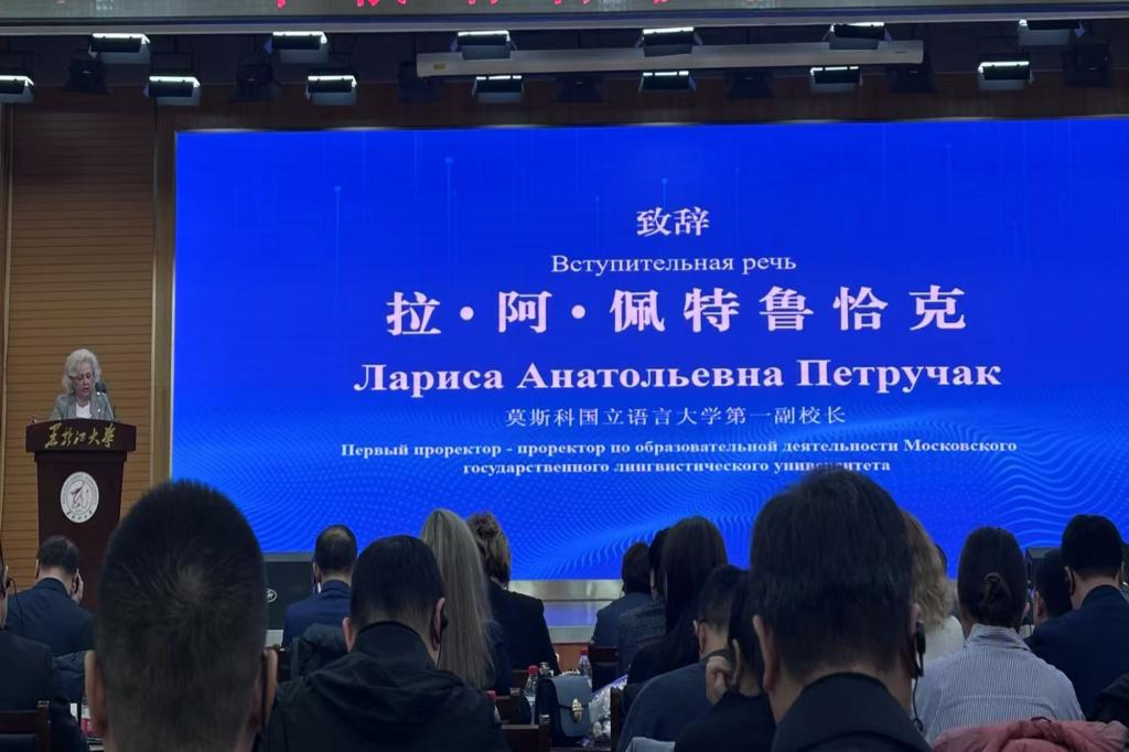 12月11日上午,访华团访问黑龙江大学并出席2024中俄语言教育大学联盟年会。大学联盟俄方牵头单位莫斯科国立语言大学第一副校长佩特鲁恰克在年会开幕式上进行主旨发言。