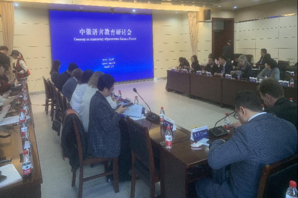 下午,访华团全体成员出席在主楼A226会议室召开的中俄语言教育研讨会。研讨会围绕对俄合作、对华合作、未来大学联盟工作设想、在华俄文教育、在俄中文教育等内容热烈讨论。访华团一行在访问学校期间还参观了校史馆,对学校悠久的发展历史和对俄办学特色给予高度评价。