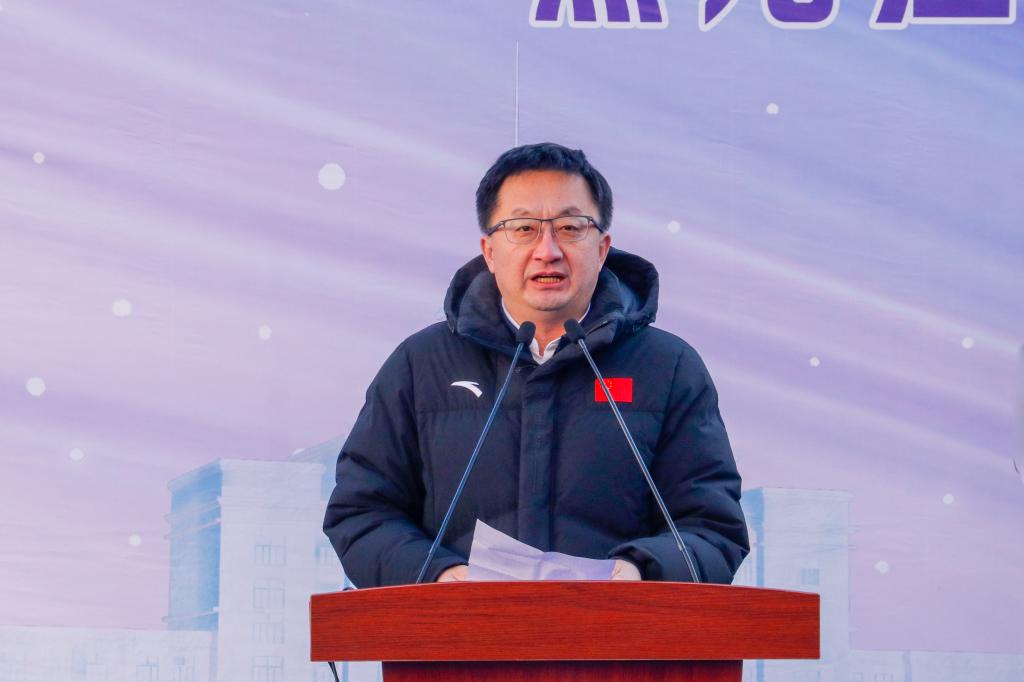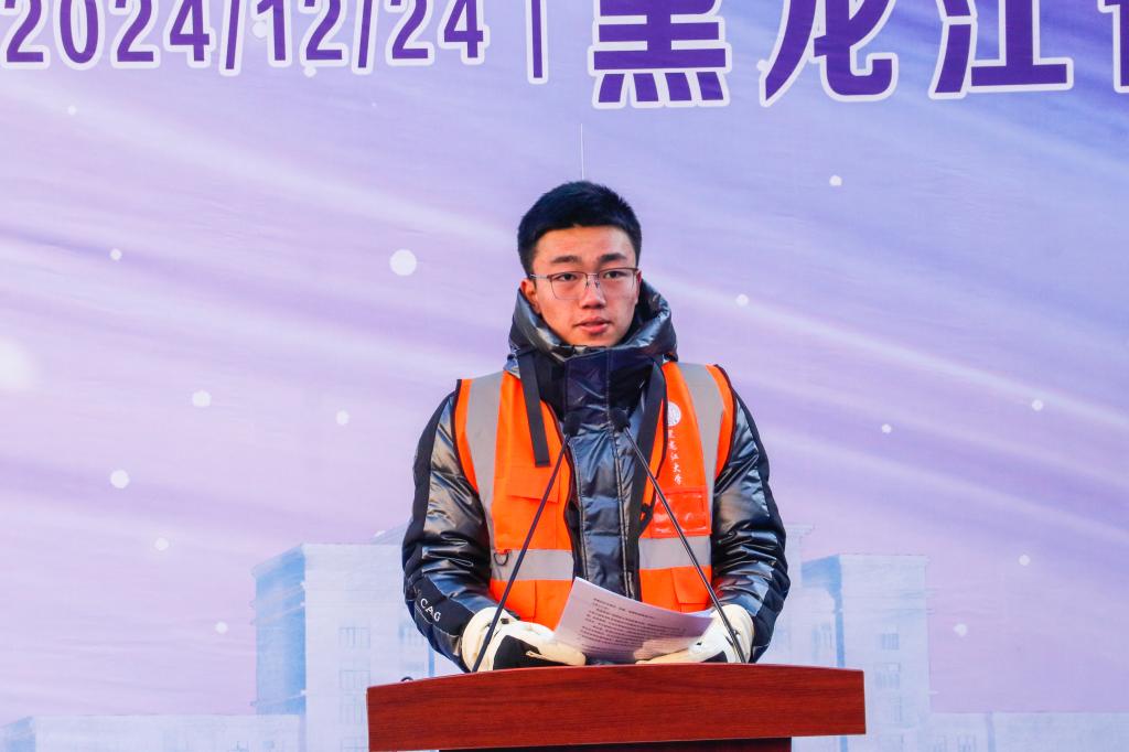 李君明在致辞中代表学校向莅临仪式的各位领导、嘉宾表示热烈欢迎,并对为大赛筹备付出辛勤努力的工作人员及踊跃参与的高校师生表示感谢。他表示,该项大赛历经多年发展,已成为展示高校师生才华的新窗口、促进文化交流的新纽带、推动冰雪产业发展的新引擎以及加强校企协同合作的新桥梁。通过此次大赛,不仅能够传承弘扬冰雪文化,更为我省乃至我国冰雪事业发展贡献智慧与力量。他希望,在第七届黑龙江省高校冰灯冰雕技艺大赛中,各参赛队员能够充分展现自我,彰显青春风采,书写属于新时代青年学子的冰雪文化壮丽篇章。最后,他预祝大赛圆满成功,并祝愿所有参赛队伍取得佳绩,为冰雪艺术的传承与发展贡献青春力量。