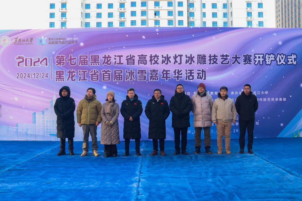 12月24日上午,第七届黑龙江省高校冰灯冰雕技艺大赛开铲仪式在我校晨曦广场举行。校党委副书记李君明、省教育厅体卫艺处处长何永祥、省艺术设计协会冰雪雕艺委会会长侯卫东、省美协雕塑艺委会主任洪峰出席本次活动。学校相关单位负责人及来自全国和国际高校的50组参赛队伍参与本次活动。艺术学院党委书记朱清桃主持活动。