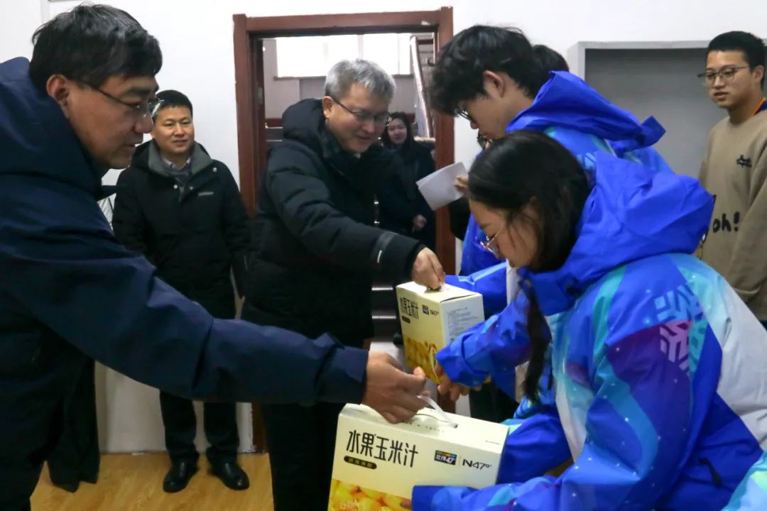 交流结束后,张金丰代表亚冬会执委会为志愿者们送上慰问品,对志愿者们在春节期间的坚守岗位、履职尽责表示衷心地感谢,并亲切叮嘱志愿者们在工作中注意防寒保暖,确保人身安全。