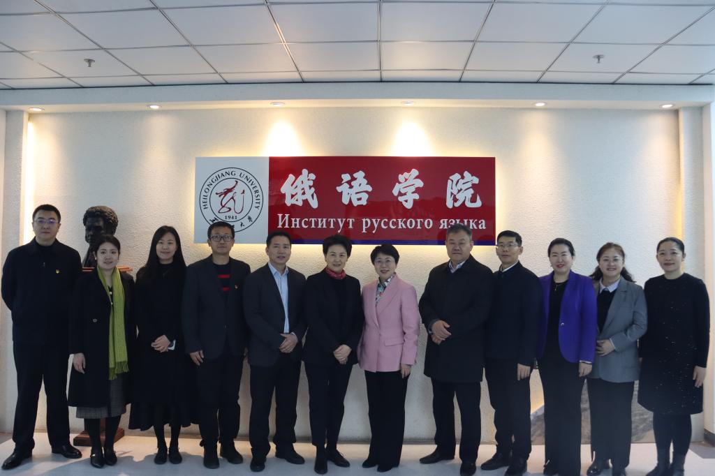 席茹对学校俄语学科成果给予肯定,并对学校提出三点希望:一是希望教育部与学校之间相互支持,共同进行黑大语言类学科建设。二是希望学校配合教育部政策,提升专业教学研究质量,推动全外语授课建设,健全俄语学科专业系统,加强国际学生教育培养,大力建设学校品牌内涵多元化发展。三是希望学校完善各个领域的系统布局与设计,通过自身发展带动区域经济发展,发挥俄语优势以不同形式在多领域进行战略合作,不断培养跨界人才,贡献黑大俄语力量。