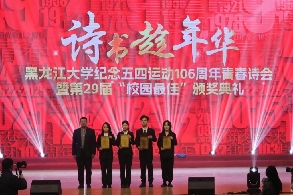 为弘扬五四精神,集中展示新时代黑大学子的精神风貌和价值追求。4月28日下午,我校在音乐厅举行“诗书趁年华”纪念五四运动106周年青春诗会暨第29届“校园最佳”颁奖典礼。校领导、相关职能部门负责人、主管学生工作领导、专职团干部、学生代表及受表彰学生参加活动。