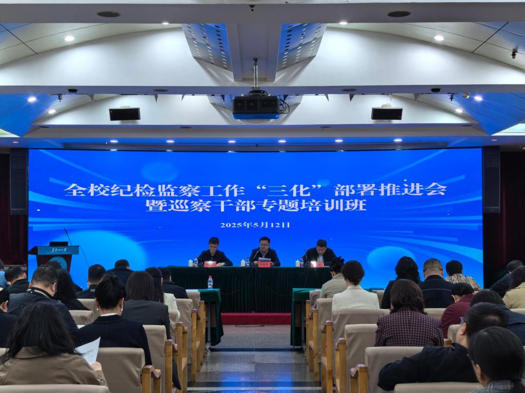 为深入学习贯彻习近平总书记关于加强纪检监察干部队伍建设的重要要求,推进部署“纪检监察工作规范化法治化正规化建设年”行动,进一步提升纪检监察干部和巡察干部队伍整体素质和业务能力。5月12日,我校举办纪检监察工作“三化”部署推进会暨巡察干部专题培训班。十一届党委第四轮巡察组成员、各二级党委纪委书记、党总支及直属党支部纪检委员,驻校纪检监察组、监督巡察办公室有关同志参加培训学习。学校党委副书记、巡察工作领导小组副组长李君明作开班动员讲话。