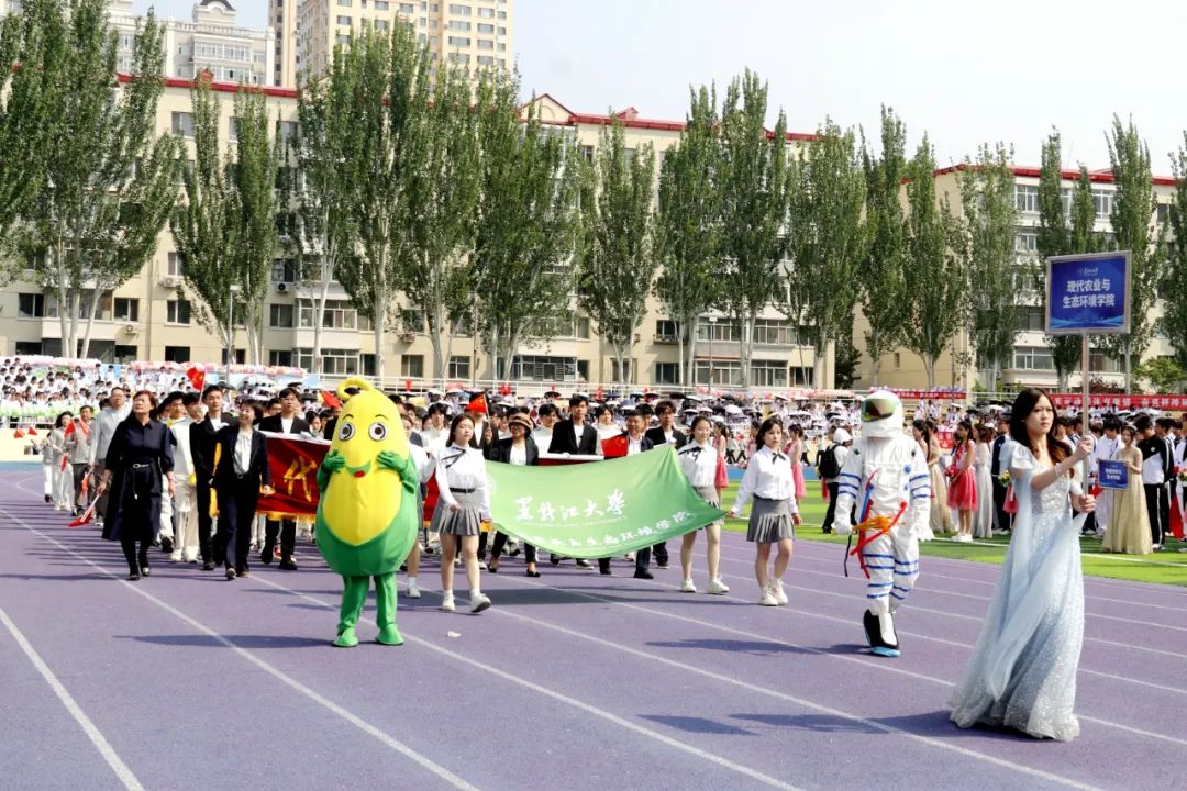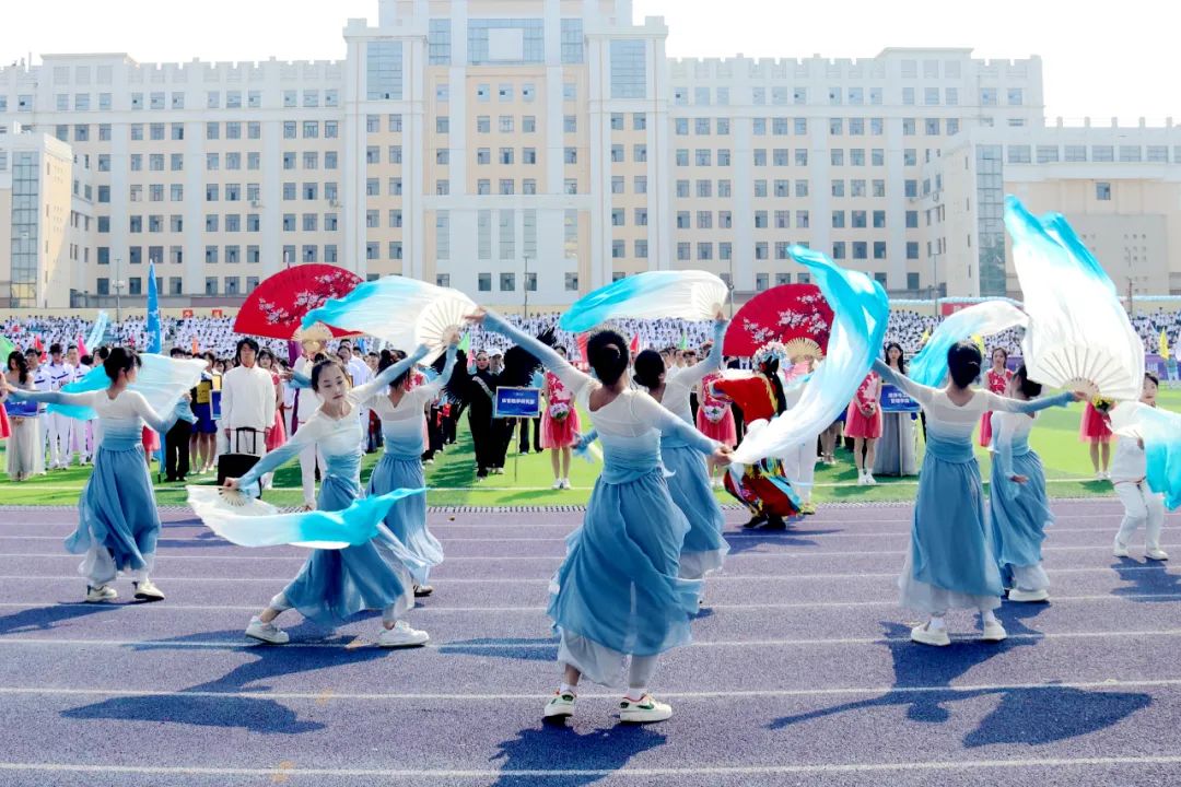 文学院代表队手持绸扇,以翩若惊鸿的戏曲身段演绎中华传统文化精髓,尽显文韵风华。历史文化旅游学院代表队融入端午龙舟元素,以昂扬的面貌、嘹亮的口号,展现了新时代大学生奋勇争先的竞技精神。机电工程学院代表队以活灵活现的舞狮、舞龙登场,通过展现传统技艺的魅力,为赛场增添青春活力。计算机与大数据学院(网络安全学院)代表队以队形变换动态拼写出“我爱黑大”的字样,传递了学院学子对学校的美好祝愿。