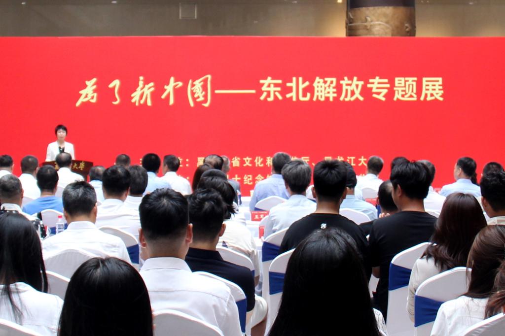6月28日下午,由省文化和旅游厅、黑龙江大学主办,东北烈士纪念馆、黑龙江大学博物馆承办的“为了新中国——东北解放专题展”开展仪式在黑龙江大学举行。来自省内外历史研究、文博收藏、艺术创作、党史研究等领域的30余名专家、学者以及学校相关部门负责同志和师生代表出席活动。活动由校党委副书记刘凤影主持。