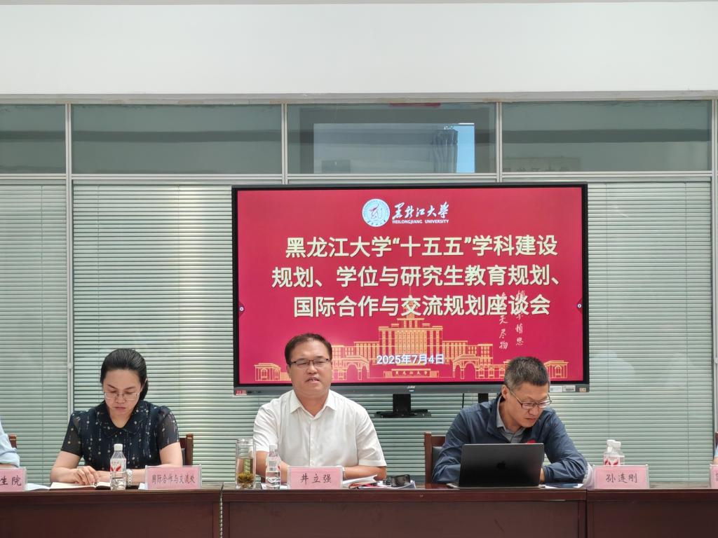 井立强副校长对“十四五”期间分项规划实施的工作成效给予肯定,并指出,“十五五”期间是集聚全校力量冲击“双一流”建设的关键阶段,规划编制要立足学校发展定位及特色,坚持问题导向,注意全局性、战略性和系统性相结合。井立强副校长对学科建设规划、学位与研究生教育规划、国际合作与交流规划编制工作强调二十一条原则意见,并提出三点要求:一是以学科建设为牵引,冲击国家、省“双一流”学科建设、冲击A类学科建设,梳理学科、学位授权点、学科带头人及学科团队建设关系,进一步加强学科内涵建设;二是立足学校对俄办学特色,强化国际交流合作与服务,探索对俄联合留学生培养,实现建规模、调结构、提质量,打破学科、校际人才培养壁垒,建设本、硕、博一体化人才培养机制,特别是提升博士研究生人才培养质量;三是积极开展有组织科研支持学科方向建设,以高水平科学研究成果培育助力学科高质量发展,实施学位授权点动态管理,加强教育质量评价体系建设。