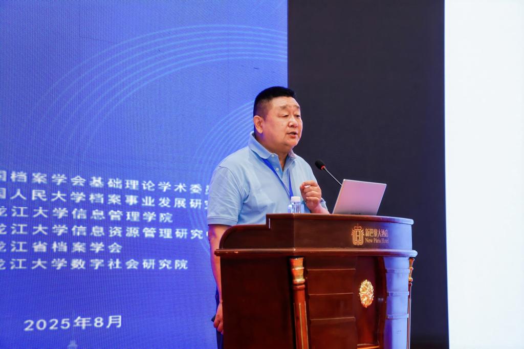 8月8日,中国档案学会档案学基础理论学术委员会换届大会暨2025年档案事业发展论坛在哈尔滨举办。本次会议由黑龙江大学信息管理学院、中国档案学会档案学基础理论学术委员会联合主办,中国人民大学档案事业发展研究中心、黑龙江省档案学会、黑龙江大学信息资源管理研究中心、黑龙江大学数字社会研究院等单位协办。来自全国各高校、学术期刊和相关单位的90余名代表参加了会议。