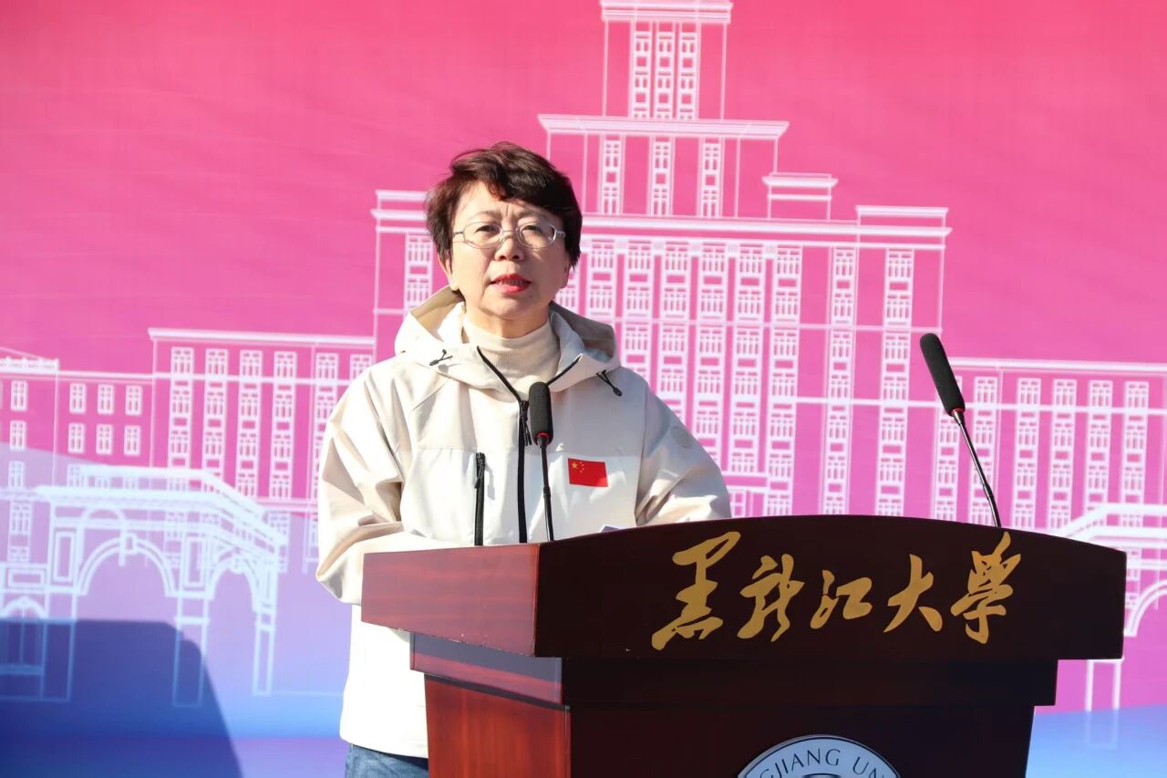 校长王敬波在活动上讲话。她表示,健康的体魄是学习、工作和生活的基础,是承载个人梦想与服务国家社会的基石。学校举办首届校园迷你马拉松赛,是黑大师生主动作为、奋发向上精神风貌的生动体现,更是为的进一步树立“健康第一”的教育理念,大力推动阳光体育与全民健身运动的深入开展,让“为祖国健康工作五十年”的号召,在校园里迸发出蓬勃的生机与活力。