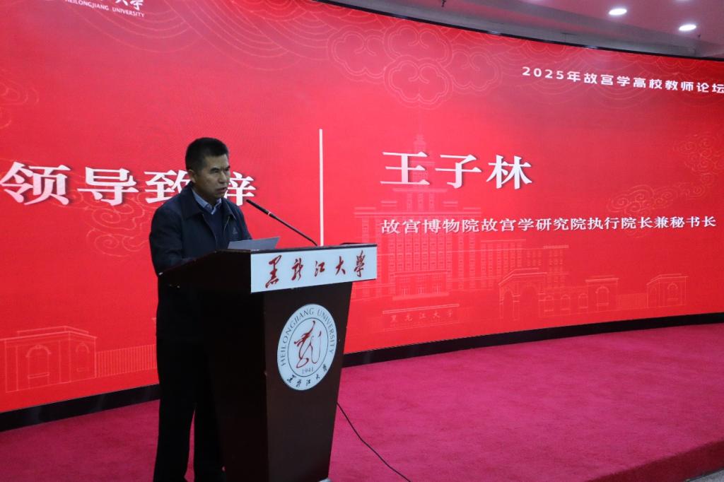 10月18日,2025年故宫学高校教师论坛在我校召开。本次论坛以“故宫学与满学清史”为主题,由故宫博物院、黑龙江大学主办,黑龙江省高校文科成果转化联盟、黑龙江大学社会科学处、研究生院、历史文化旅游学院、满学研究院、艺术学院、故宫博物院故宫学研究院共同承办,中国社会科学院大学故宫学研究中心、深圳大学故宫学研究院提供学术支持。校党委副书记李君明、故宫博物院故宫学研究院执行院长兼秘书长王子林,故宫博物院、南开大学、南京工业大学、深圳大学、中国社会科学院大学、湖南工业大学的特邀学者、学校相关职能部门和学院负责人及来自国内多所知名高校、科研院所、文博单位的嘉宾出席会议。社会科学处处长于冠超主持论坛开幕式。
