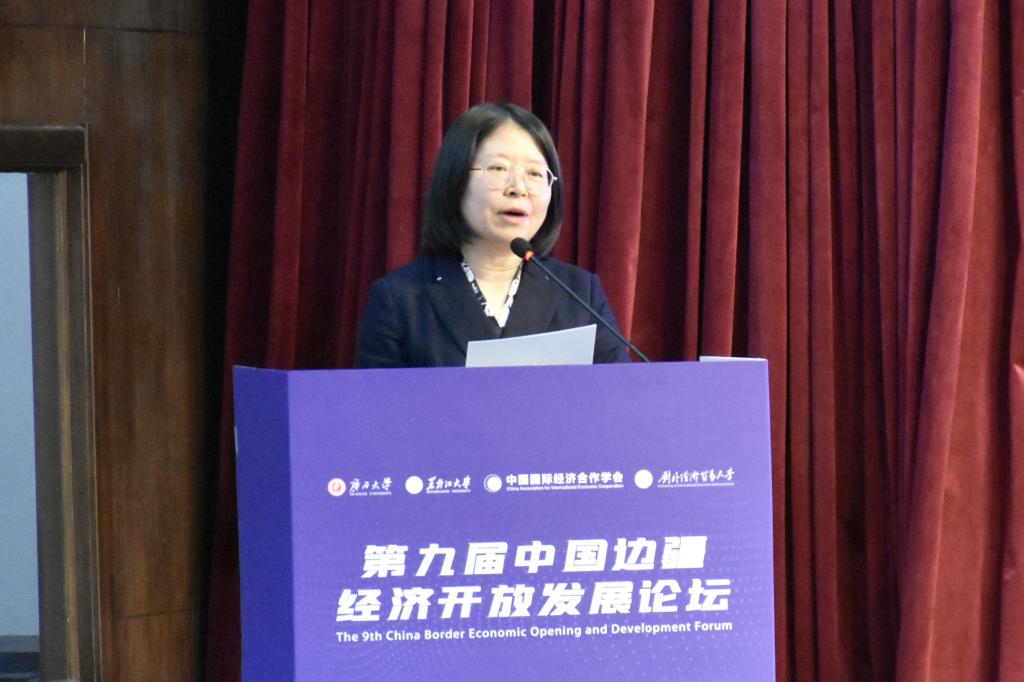 魏影副校长在闭幕式上发言,为未来持续打造中国边疆经济开放发展提出倡议,并宣布第九届中国边疆经济开放发展论坛闭幕。(经济与工商管理学院供稿)