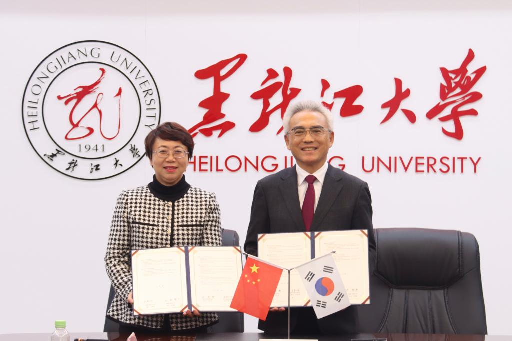 会上,王敬波与李喜鹤签署《中国黑龙江大学与韩国牧园大学国际交流细则协议书》。