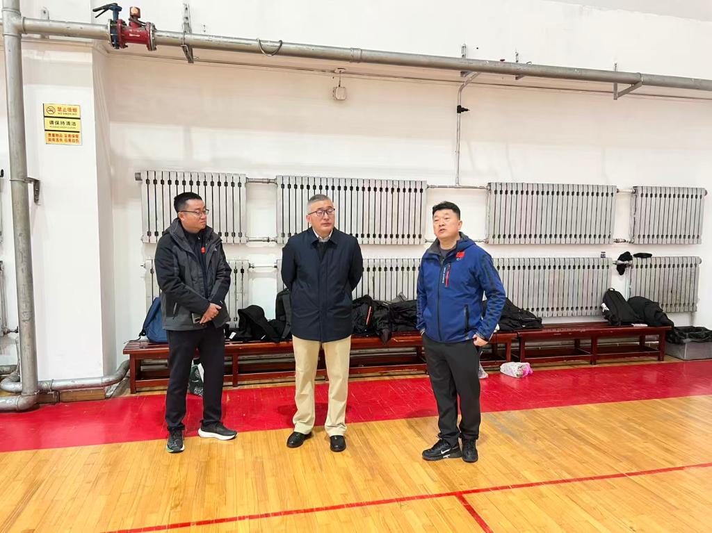 陈维厚一行先后前往体育馆、排球场、体操室、地下跑道及学校田径场等多个运动场地,细致查看各类体育设施的维护状况与器材配备情况,重点关注场地使用的安全性、合理性与功能性。在走访过程中,他现场观摩了部分体育课程的教学组织与学生体质健康测试开展情况,并与一线体育教师亲切交流,了解当前课程设置、教学方法、学生参与度以及体质健康状况。