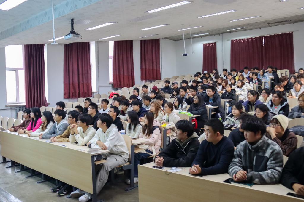 井立强围绕“风雨兼程见彩虹”“宝贵经验释伟力”“凌云纵横绘蓝图”三个维度,系统剖析了“十四五”以来中国在各领域取得的伟大成就、积累的宝贵经验以及面临的机遇与挑战。他从经济发展、文化创新、生态保护等关键领域切入,结合新能源汽车、光伏农业等产业的发展实践,重点向同学们展示中国在绿色环保领域的显著成果。此外,他回顾了黑龙江大学在“十四五”期间作出的突出建设,并勉励同学们扎实学好专业知识,为国家发展贡献青春力量。