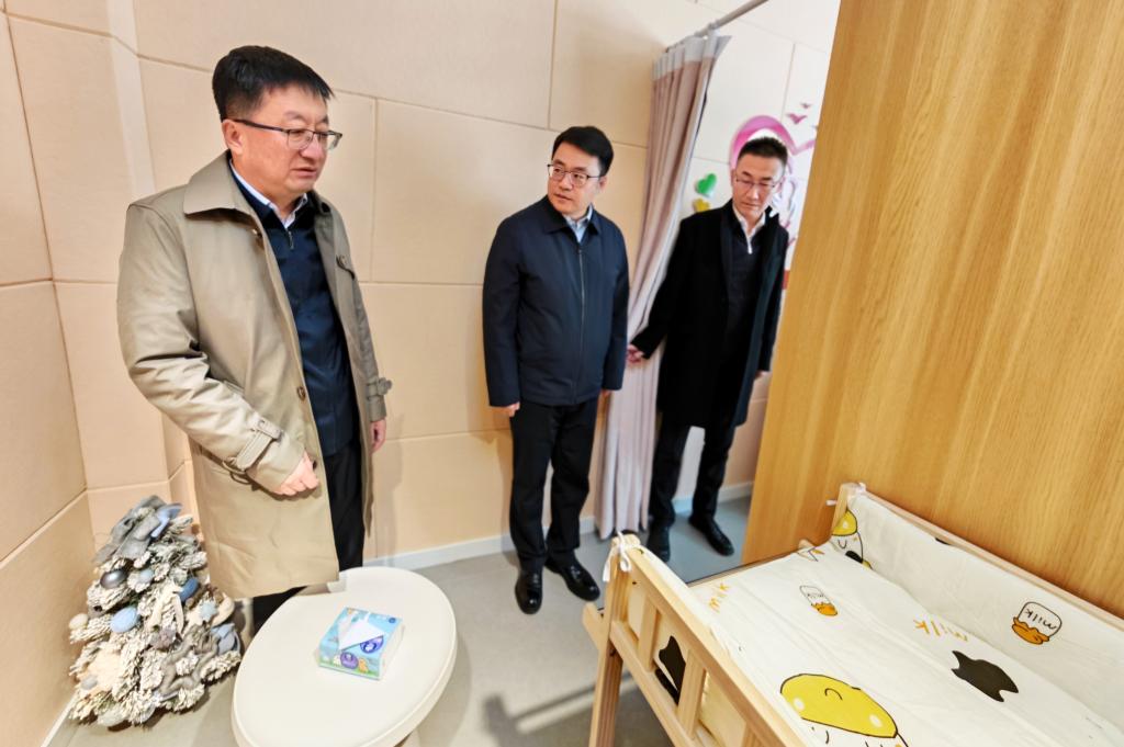在汇文楼母婴室内,李君明仔细查看了室内设施配置现状,详细了解母婴室的空间布局、设施配置、日常维护等情况。细致询问设备使用及安全操作情况,并对结合学校特色打造的母婴空间给与充分肯定。崔本强重点查看哺乳座椅、温奶器、消毒设备、空调通风等基础设施的完好性与实用性,深入了解母婴室物资补给流程、卫生消杀标准及管理制度落实情况等细节问题。