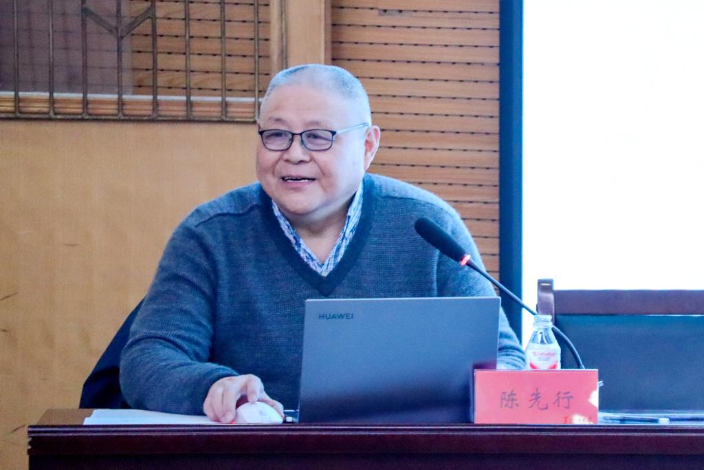 专题讲座环节,复旦大学古籍整理研究所“章培恒讲席教授”、国家文物鉴定委员会委员、上海市文史研究馆馆员陈先行为黑龙江大学师生代表做题为《古籍保护与版本学》专题讲座。他系统阐述了书籍文物观是古籍保护的动因,版本学的起源与书籍文物观的相互关系,并结合鉴定版本字体、纸张、版式等特征,深入解析了版本鉴定的方法与意义。