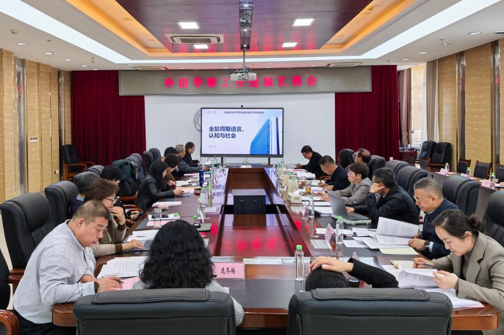 外国语言文学学科带头人、外语学部学术委员会主任委员孙淑芳介绍学部整体工作,详细阐述了学科方向设置和学科团队成员组成。她指出,学部在学科评估、研究方向凝练、建设任务确定、高层次人才引进、战略咨询委员会筹建及系列学术会议筹备等方面取得了阶段性进展,下一步会持续深化团队层次提升和成果聚焦工作。学科方向带头人及团队负责人依次介绍了团队成员、特色优势、预期标志性成果等。外语学部学术委员会副主任委员孙超介绍了学部下一步工作计划。他提出,未来将聚焦高水平学术会议、战略咨询委员会作用发挥、第六轮学科评估、省级文科重点实验室等重点任务,全面提升学科核心竞争力。