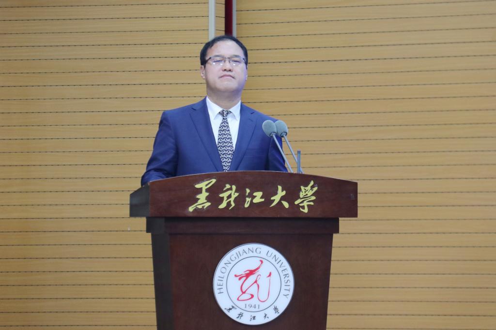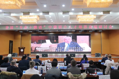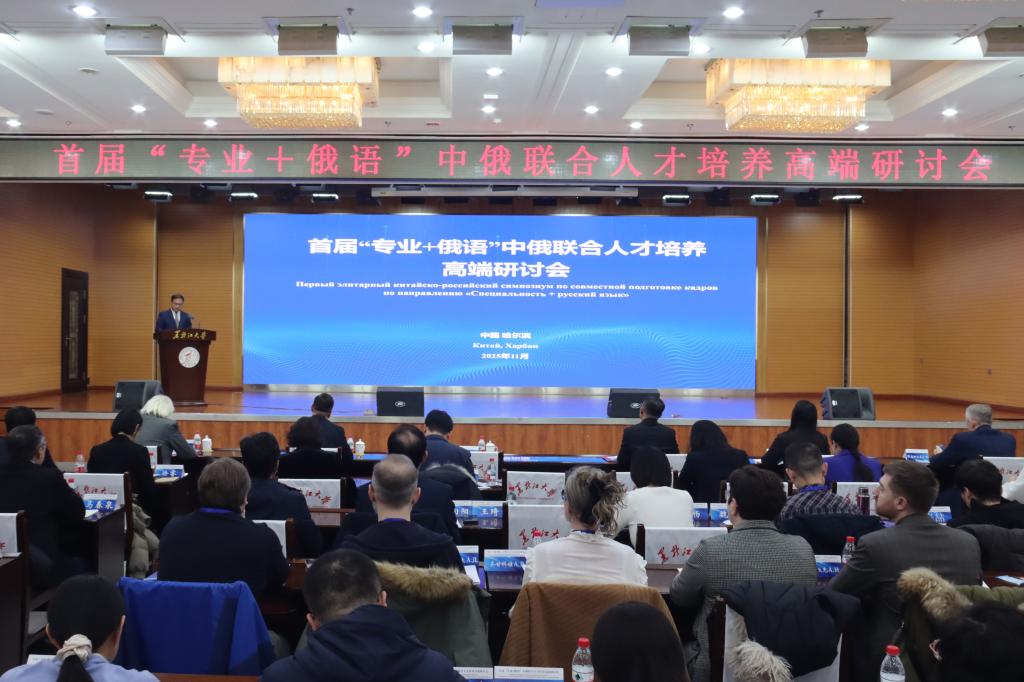11月20日,由黑龙江大学、俄罗斯新西伯利亚国立大学主办,由中俄学院、国际合作与交流处承办的首届“专业+俄语”中俄联合人才培养高端研讨会在主楼一楼报告厅举办。校党委书记迟宝旭、副校长井立强,黑龙江省教育厅对外合作与交流处副处长冯扬,俄罗斯驻哈尔滨总领事馆领事斯凯顶奢·亚历山大,新西伯利亚国立大学国际处处长萨盖伊达克Е. Н.,新西伯利亚国立大学自然科学系系主任、黑龙江大学中俄学院俄方院长列兹尼科夫В. А.以及来自国内外各高校的130余名专家学者参加会议。井立强主持会议。