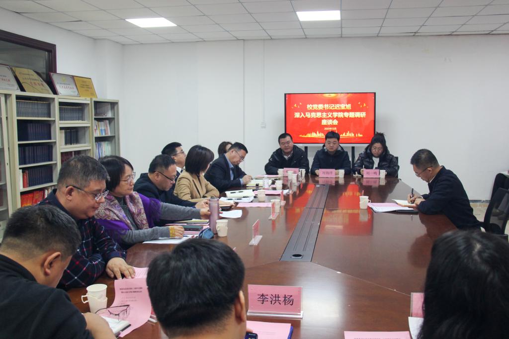 12月3日下午,校党委书记迟宝旭到马克思主义学院调研指导学院工作,并于汇文楼951会议室召开党的二十届四中全会精神宣讲暨专题调研座谈会。学院领导班子成员、学科带头人、教师代表参加会议。会议由马克思主义学院党委书记张丹主持。
