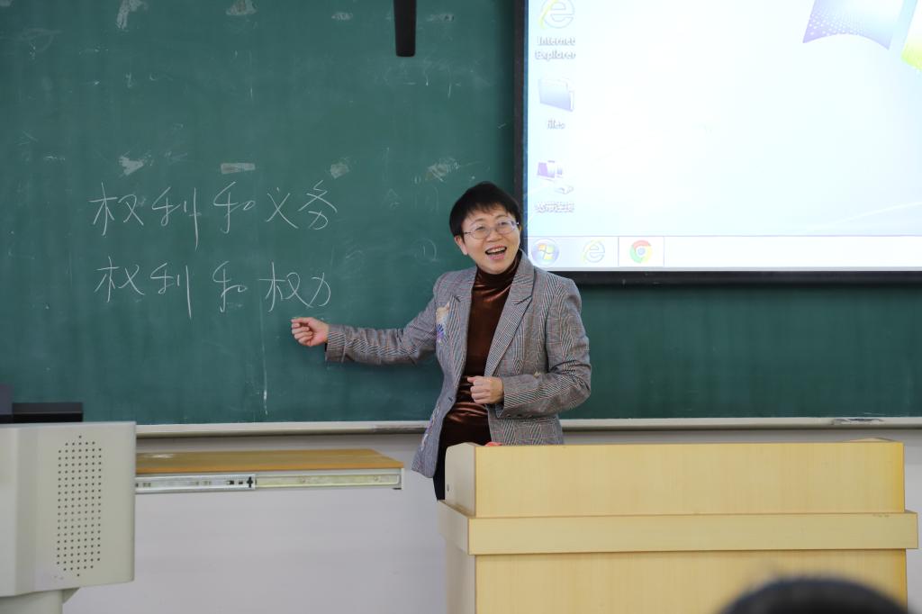 授课期间,马克思主义学院副教授韩忠全向同学们重点讲解了法律的起源、发展、内涵等内容。