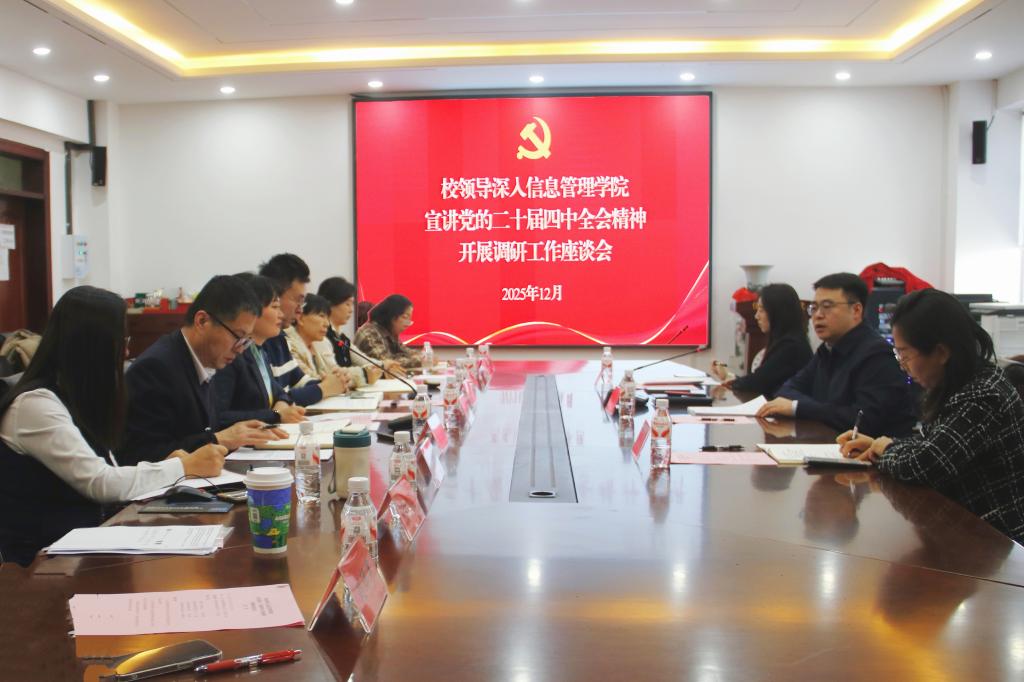 12月4日上午,副校长崔本强深入信息管理学院,宣讲党的二十届四中全会精神并召开巡察工作座谈会。学校党委第一巡察组副组长、新闻传播学院党委书记江瑞,学校监督巡察办公室李心欣参加调研。会议由信息管理学院党委书记袁立莉主持,学院领导班子成员、各系主任、骨干教师代表及辅导员代表参加了会议。