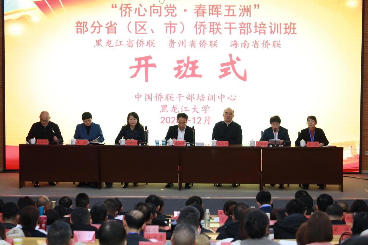 12月5日上午,“侨心向党·春晖五洲”部分省(区、市)侨联干部培训班在我校正式开班。中国侨联党组成员、副主席,直属机关党委书记连小敏,黑龙江省政协常委郭占力,黑龙江省侨联党组书记、主席申建平,黑龙江大学校长、党委副书记王敬波,海南省侨联党组成员、副主席苏燕,贵州省侨联党组成员、副主席兼秘书长季洁出席开班仪式。中国侨联干部培训中心副主任张献锋主持开班仪式。