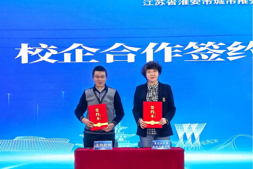 机电工程学院党委副书记杨宁宁与淮钢特钢股份有限公司招聘主管丁阳签约。