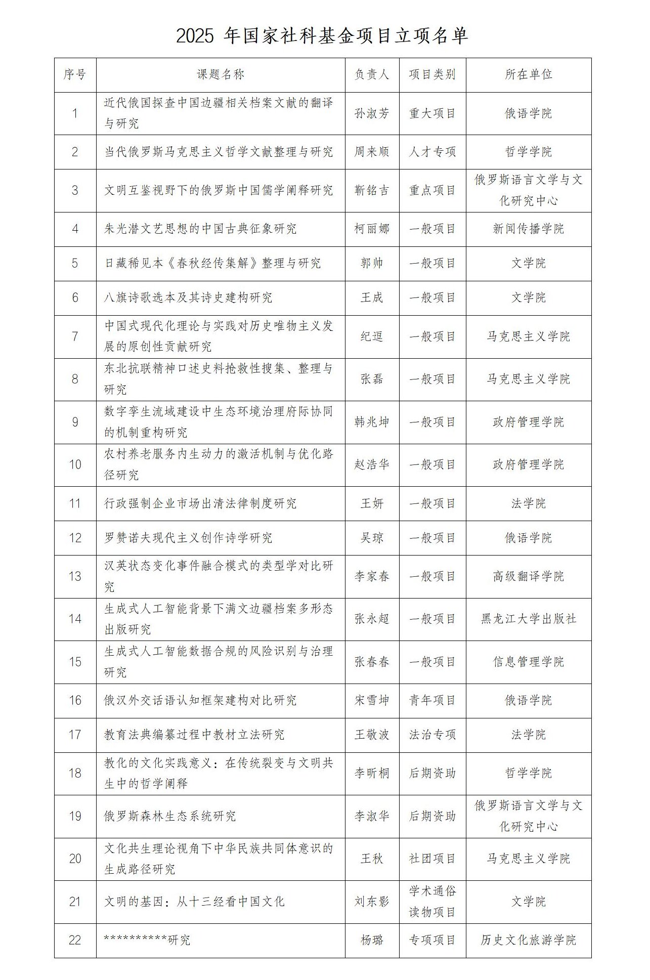 近日,2025年国家社科基金各类项目立项结果陆续公布,截至12月22日,我校共获批立项22项,另有其他若干专项尚未公布结果。