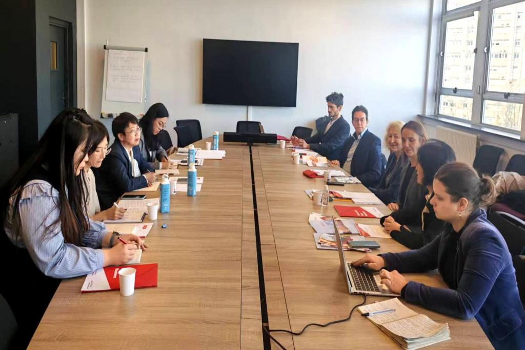 代表团访问巴黎南戴尔大学期间,受到了该校校长卡罗琳娜·洛朗-戴蒙,分管学生培养的副校长梅格莱娜·杰丽瓦和分管教育多语言与国际化的副校长阿莱桑德罗·贝努奇的亲切接待。双方重点就共建中外合作办学项目和机构深入交换意见,在办学层次、专业领域、治理架构等关键问题上增进了理解,明确了下一步共同推进的路线图与时间表。这标志着两校合作从师生交流向系统性、制度性融合跨越。双方一致同意,持续拓展中法学院框架下的各类合作项目,并探讨开展面向法国本土中文教师的专业培训。尤为重要的是,双方就全面恢复并扩大因疫情中断的学生交换项目达成一致,将于近期启动新一轮学生互派。会谈前,代表团还与正在南戴尔大学学习的中法学院学生举行座谈,了解学生们在法学习生活情况。同学们分享了海外求学的收获与挑战,王敬波校长悉心聆听并给予鼓励,表示学校永远是大家的坚强后盾,并叮嘱同学们砥砺学术、知行合一,成为中法文化交流的友好使者。