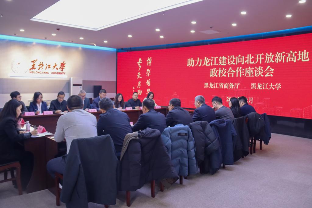 12月24日下午,我校在主楼A302会议室举行助力龙江建设向北开放新高地政校合作座谈会。省商务厅党组成员、副厅长谭映辉,我校副校长魏影、校长助理陈维厚出席会议。省商务厅、我校经济与工商管理学院、国内合作发展中心相关负责人员参加会议。会议由校党委常委、宣传部部长、经济与工商管理学院党委书记杨其滨主持。