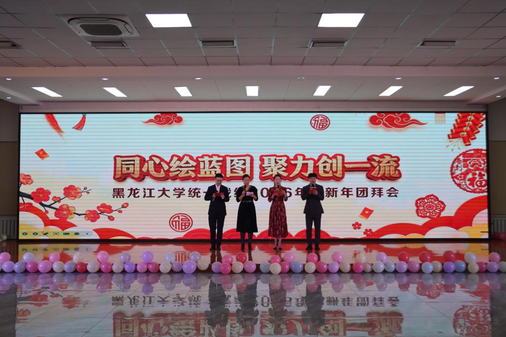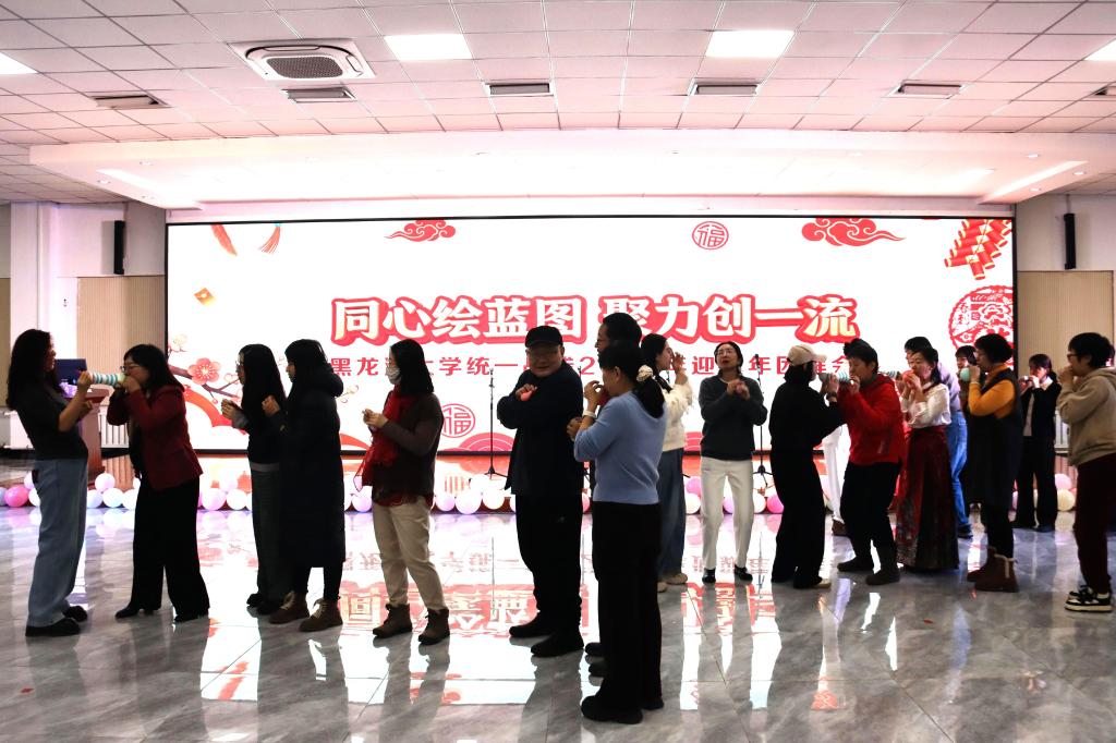 12月22日,黑龙江大学“同心绘蓝图 聚力创一流”2026年统一战线迎新年团拜会在大学生活动中心举行。校党委书记迟宝旭,校长王敬波,党委副书记、副校长三朗扎西,党委副书记李君明、刘凤影,副校长魏影、崔本强、许辉,党委常委、宣传部部长杨其滨,党委常委、组织部部长王刚,党委常委、统战部部部长林强与学校各民主党派、无党派人士、留学归国人员等统一战线成员欢聚一堂,共迎新年、共话发展。