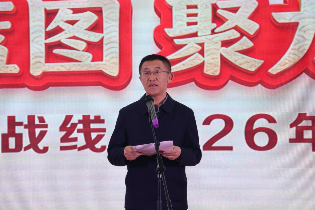 迟宝旭代表学校党委致辞,向全校统一战线成员致以诚挚问候和新年祝福,并对过去一年统战工作取得的成绩给予充分肯定。他指出,2025年学校统一战线凝聚共识有力、立足本职有为、服务发展有效,在思想政治引领、党外干部培养、履职建言、社会服务等方面成果丰硕,为学校事业发展注入了强劲的“统战动能”。展望2026年,他强调,要聚焦“十五五”规划开局和学校“双一流”建设关键任务,共同绘好思想引领“同心圆”、民族团结“石榴红”和“双一流”攻坚图,希望全校统战成员继续携手同心、双岗建功。