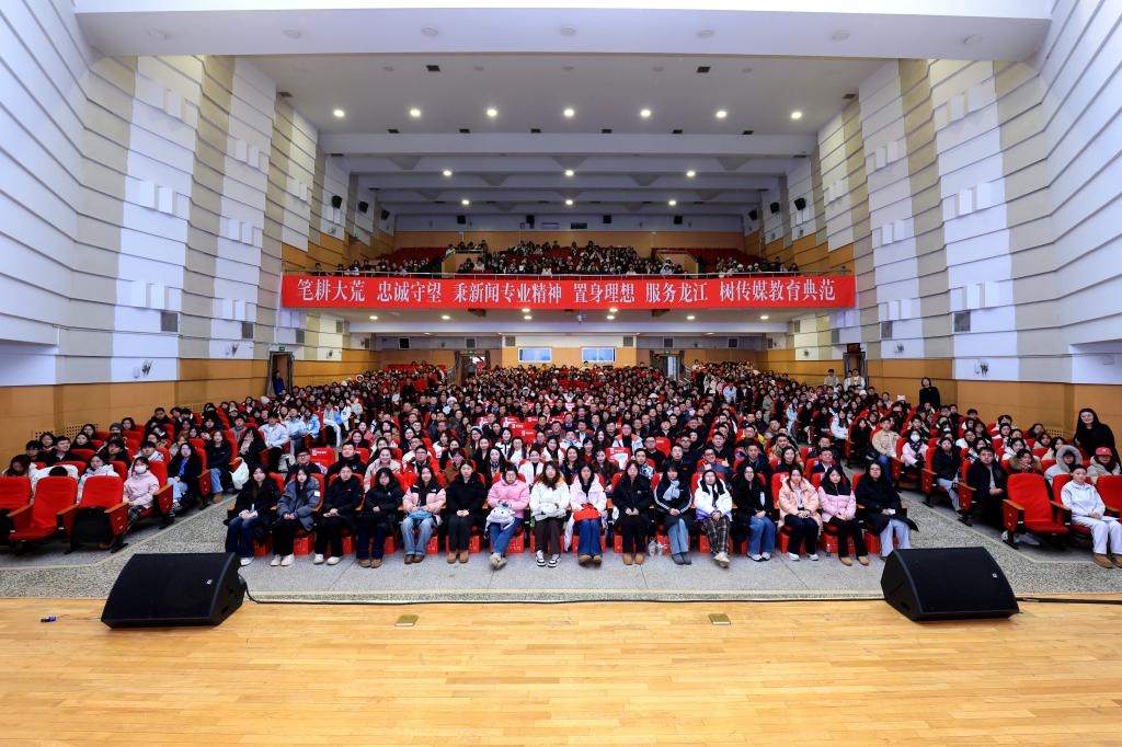 李君明在致辞中指出,新闻传播学院已初步构建起本-硕-博完整的人才培养体系,成为龙江新闻人才的摇篮与东北地区新闻传播教育的基地。四十年间,近万名新传学子秉持初心使命,成长为新闻战线和各行业发展的中坚力量。他强调,面对传媒业的深刻变革与发展新要求,新闻传播学院要以此次研讨会为新起点,进一步完善“学界+业界”双师育人机制,以高水平科研平台、产教融合平台赋能学生成长,助力龙江经济社会发展。