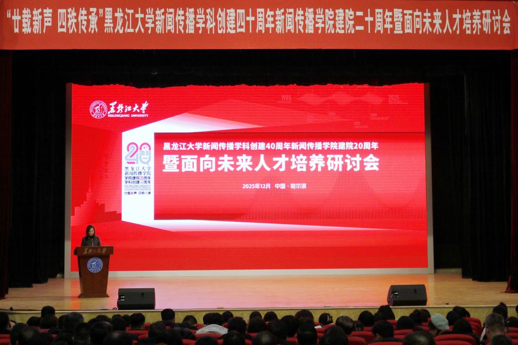 中国新闻史学会会长、中国传媒大学新闻学院院长隋岩在视频致辞中肯定了黑大新闻传播学科的建设成果。他指出,黑大新闻传播学院“扎根龙江、服务国家”,在人才培养、学术研究、社会服务等领域取得成果,并希望黑大新闻传播学院持续开展教育教学改革,推动新闻传播教育事业繁荣发展。