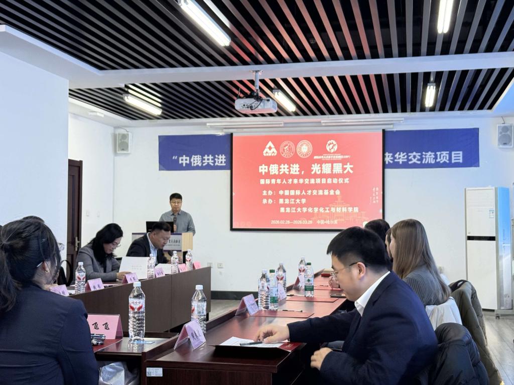 此次交流项目是由中国国际人才交流基金会主办,黑龙江大学承办,黑龙江大学化学化工与材料学院具体组织实施。副校长魏影、许辉,科学技术处、国际合作与交流处、国际文化教育学院、化学化工与材料学院相关负责同志及俄罗斯科学院喀山中心青年代表参加仪式。仪式由化学化工与材料学院党委书记徐英明主持。