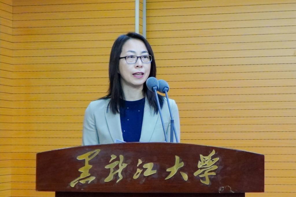经济与工商管理学院国际商务专业硕士负责人宁进发言。她指出,国际经济与贸易专业是我校首个全英文授课专业,此专业依托多学科优势,立足全球经济变革,致力于培养高素质复合型人才。同时她代表教学团队表示,将全力为留学生提供优质教学,并勉励留学生深化跨文化交流,助力构建人类命运共同体。